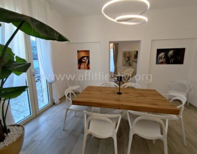 Appartamento di 120 mq. al primo piano di una palazzina senza ascensore posta davanti al mare, si compone di 3 camere da letto matrimoniali, un ampio soggiorno con 2 divani, una cucina abitabile, due bagni entrambi con box doccia, per un totale di 6 posti letto, un ampio terrazzo perimetrale da cui si vede il mare davanti, in dotazione tv, lavatrice, aria condizionata e due posti auto privati recintati e numerati.