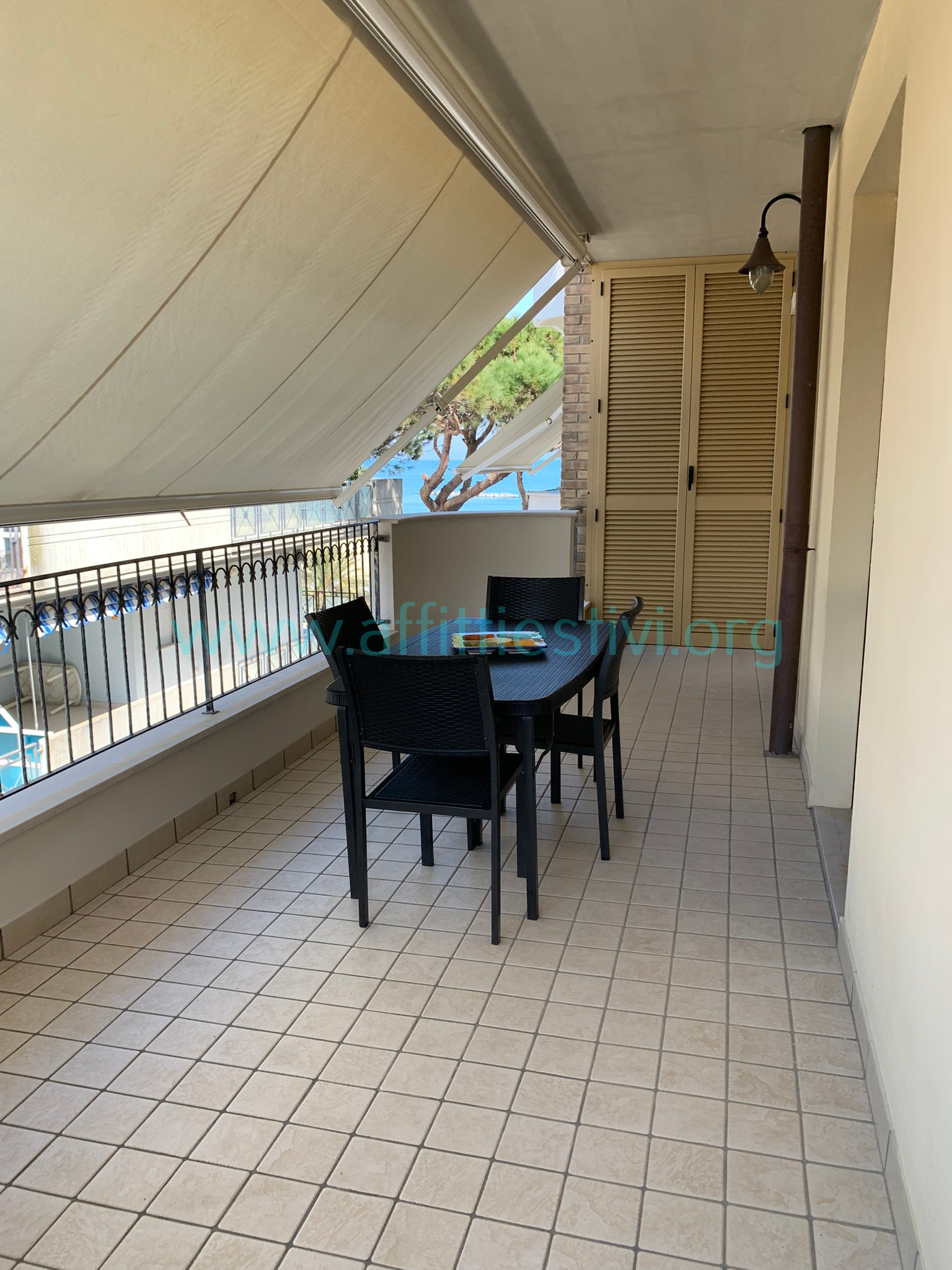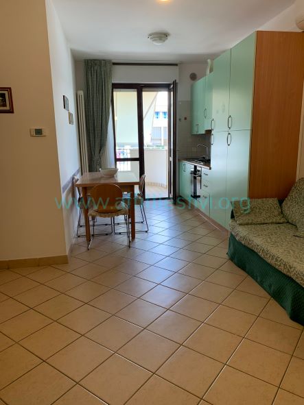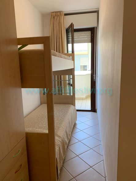 Appartamento di 70 mq. al terzo piano di una palazzina con ascensore di fronte al mare in zona centrale, si compone di due camere da letto di cui una matrimoniale e una con letto a castello e due letti singoli, un bagno con box doccia, una soggiorno con angolo cucina, un ampio terrazzo arredato con tenda e vista mare laterale. In dotazione tv, lavatrice, lavastoviglie, ed aria condizionata.