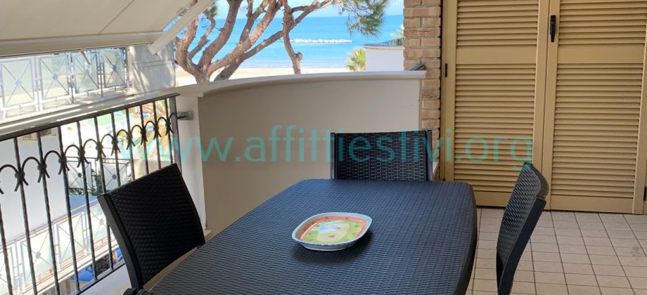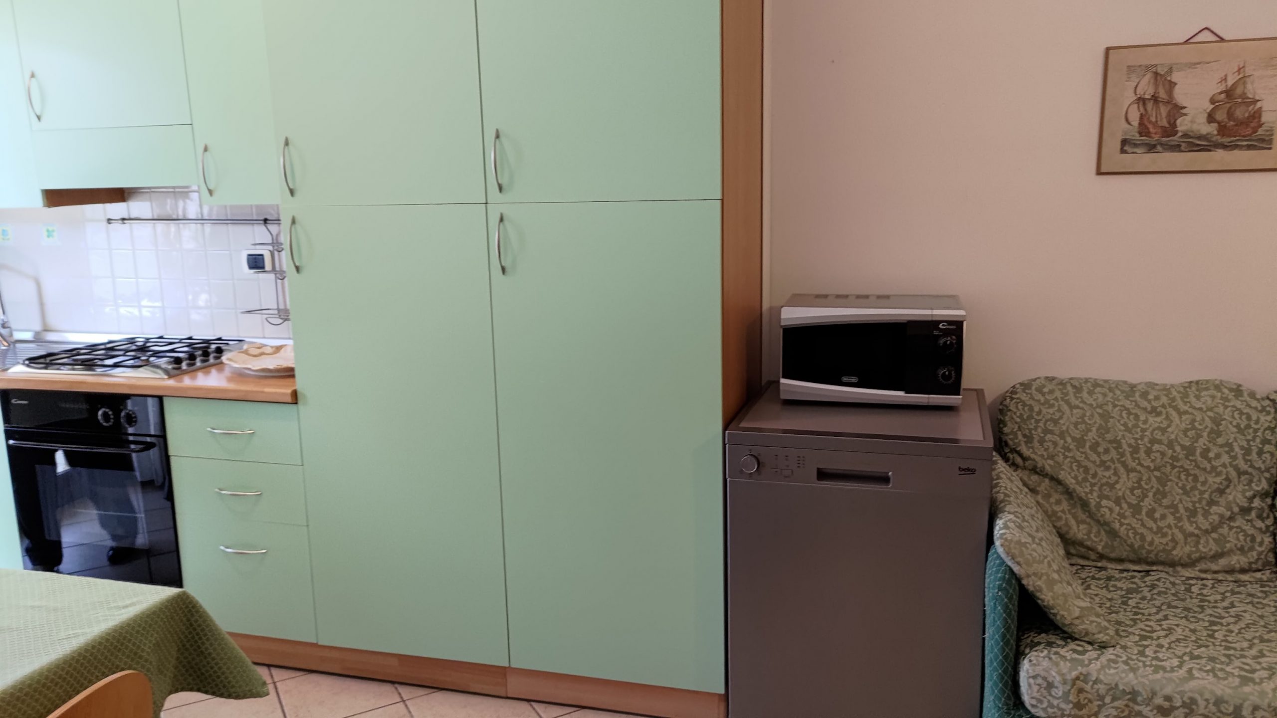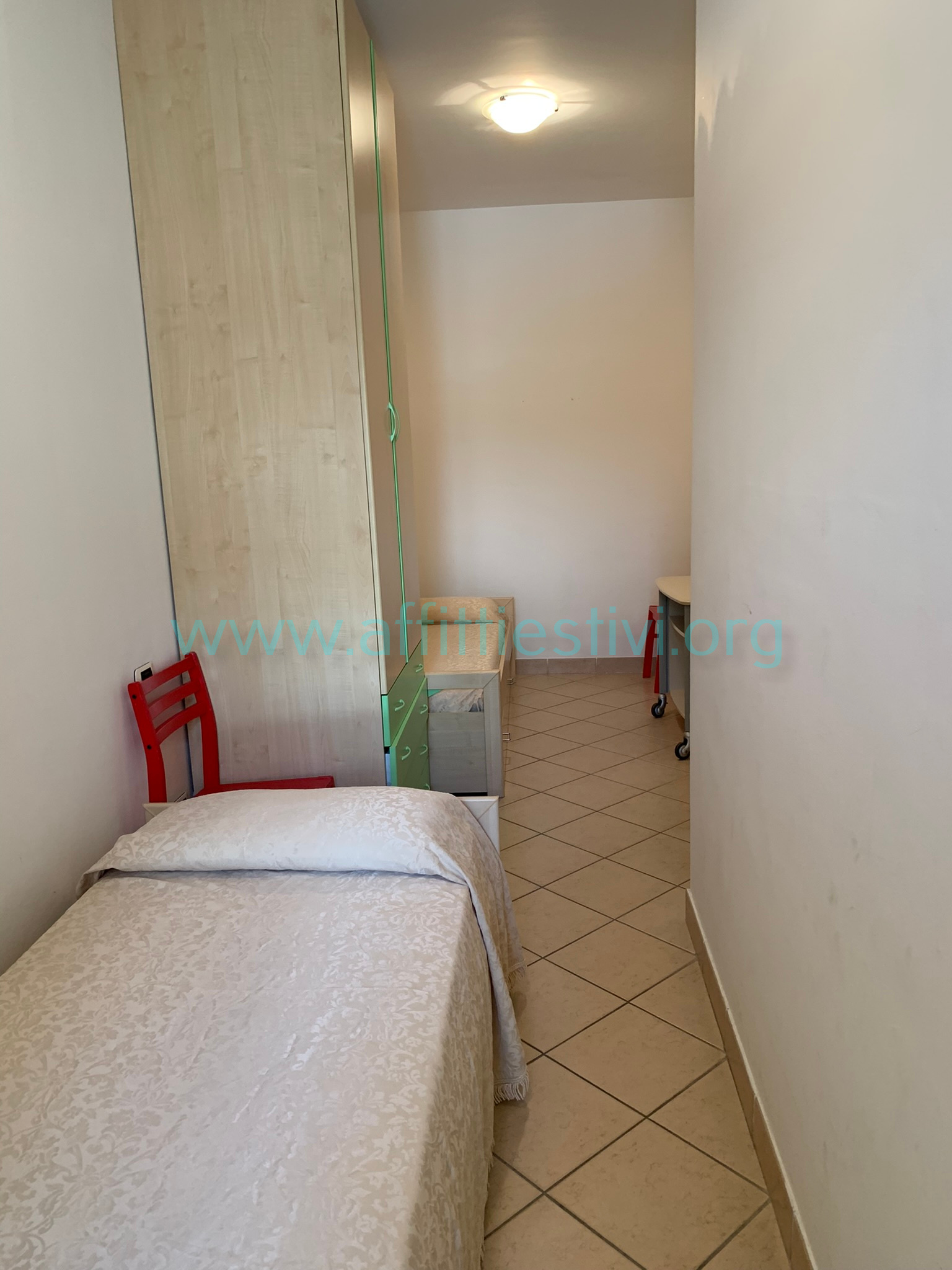 Appartamento di 70 mq. al terzo piano di una palazzina con ascensore di fronte al mare in zona centrale, si compone di due camere da letto di cui una matrimoniale e una con letto a castello e due letti singoli, un bagno con box doccia, una soggiorno con angolo cucina, un ampio terrazzo arredato con tenda e vista mare laterale. In dotazione tv, lavatrice, lavastoviglie ed aria condizionata.
