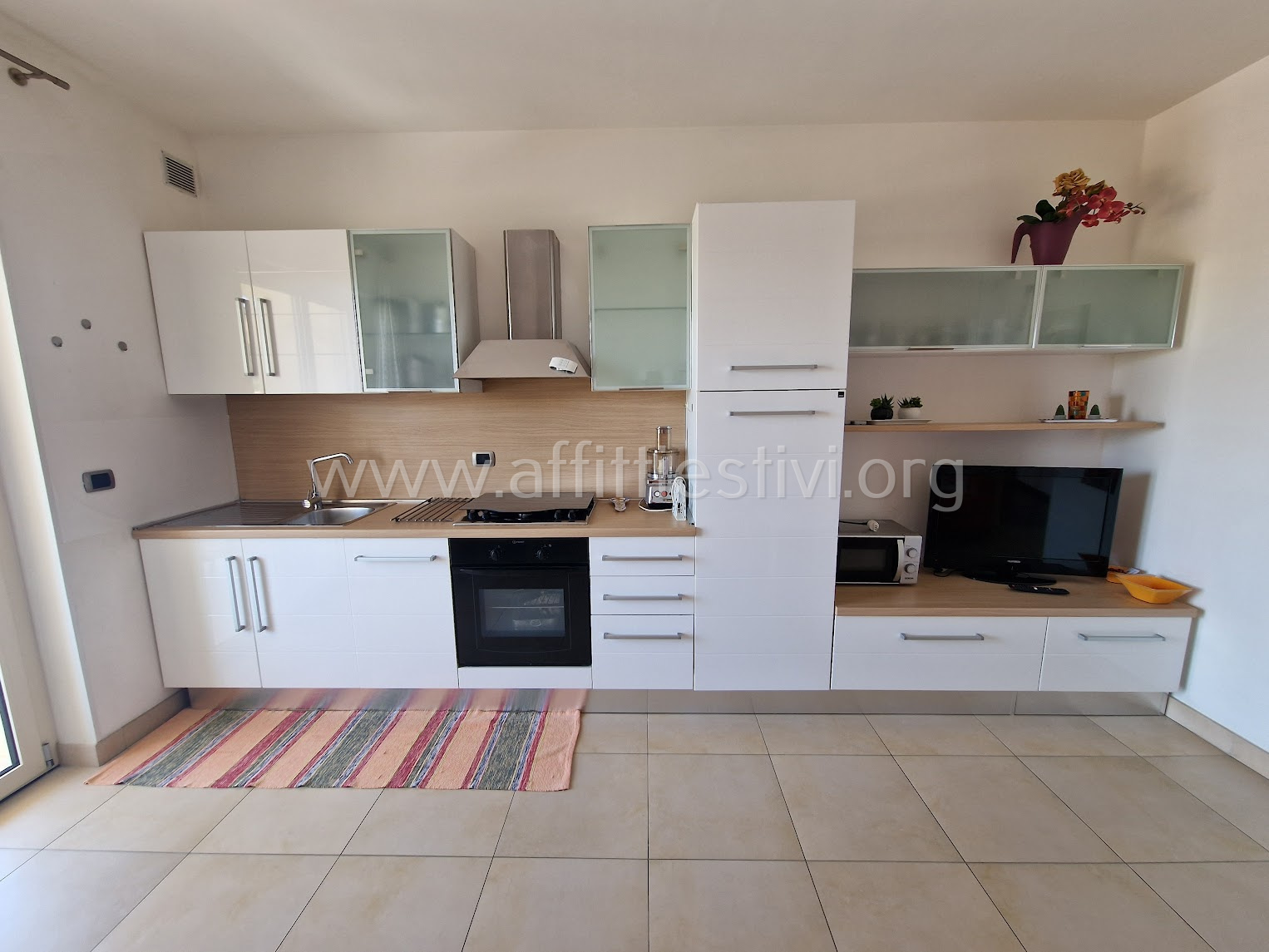 appartamento posto di fronte al mare al centro di Roseto degli Abruzzi, in una palazzina appena ultimata dotata di ascensore. L’abitazione ha un grande terrazzo laterale ma con vista mare, arredato con una spettacolare vista panoramica su tutta la cittadina rivierasca: spiaggia, mare, lungomare, centro abitato e paesaggio collinare retrostante. In dotazione ampia batteria di pentole, servizio di piatti, ceramiche, posate numerose. Aria condizionata in tutte i locali, lavatrice, lavastoviglie, tv con schermo piatto. Arredi moderni ed accattivanti di alto livello qualitativo scelti con gusto ed abbinati. Finiture di lusso, pavimento in legno parquet. La casa si compone di soggiorno , due camere di cui una con letto matrimoniale ed armadio, ed una seconda con un letto a castello + un letto singolo ed una poltrona-letto per un totale di 6 posti letto. Angolo cucina e bagno con box doccia. Tutto quello che desiderate per un soggiorno impeccabile ed indimenticabile nella bellissima località balneare di Roseto degli Abruzzi. INTERNO 21 del Residence Miramare, quinto piano.