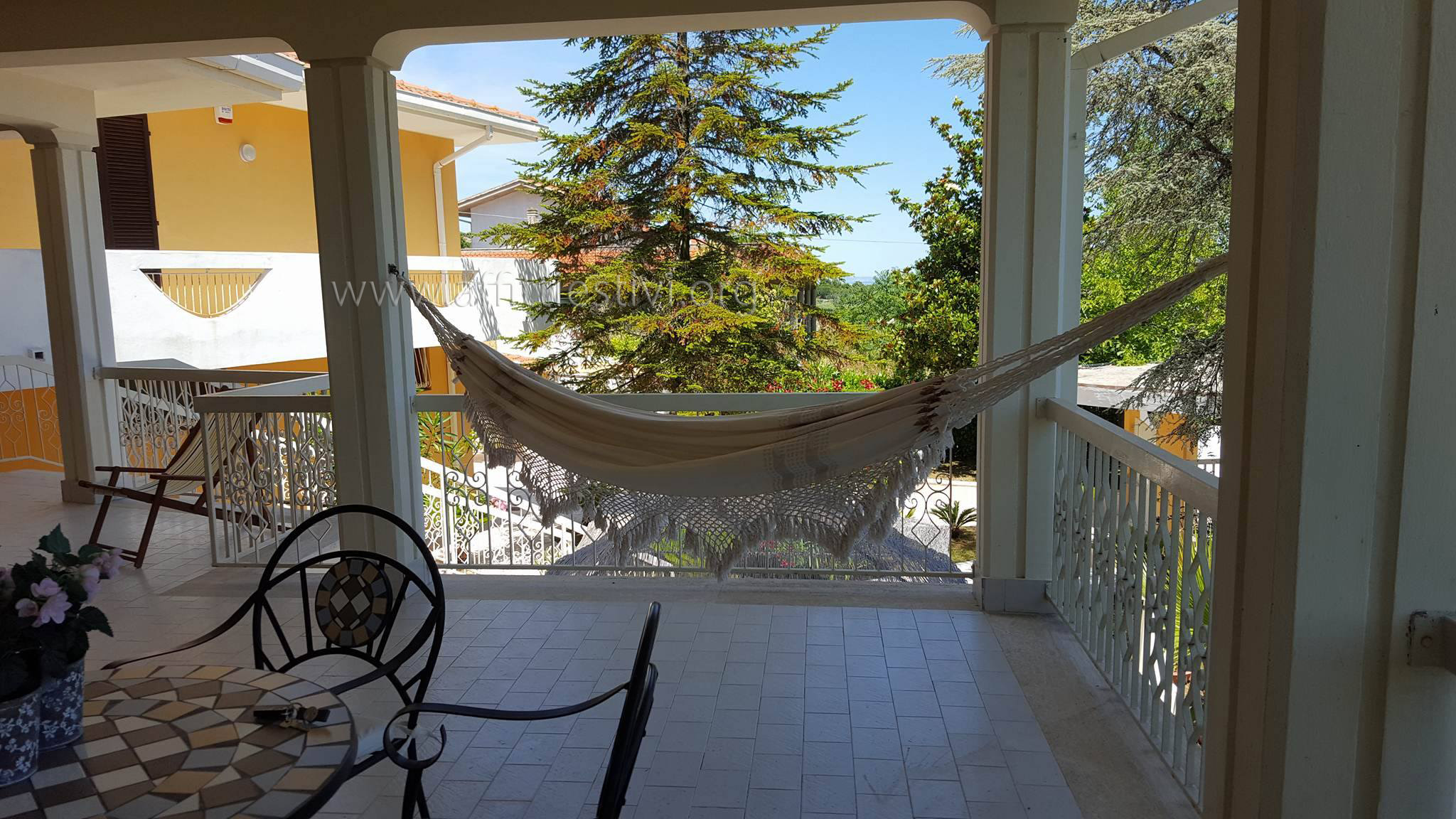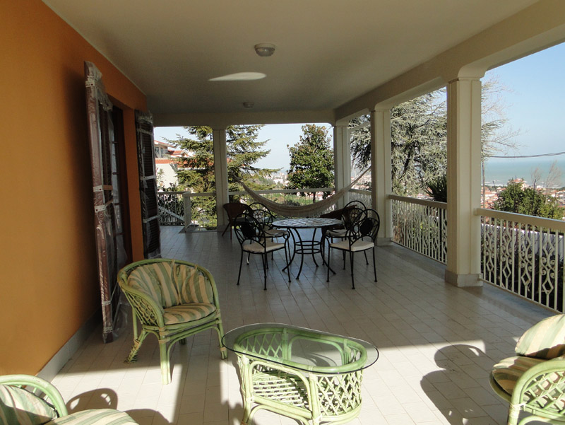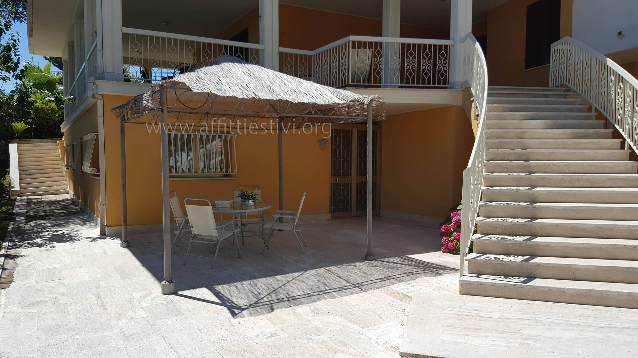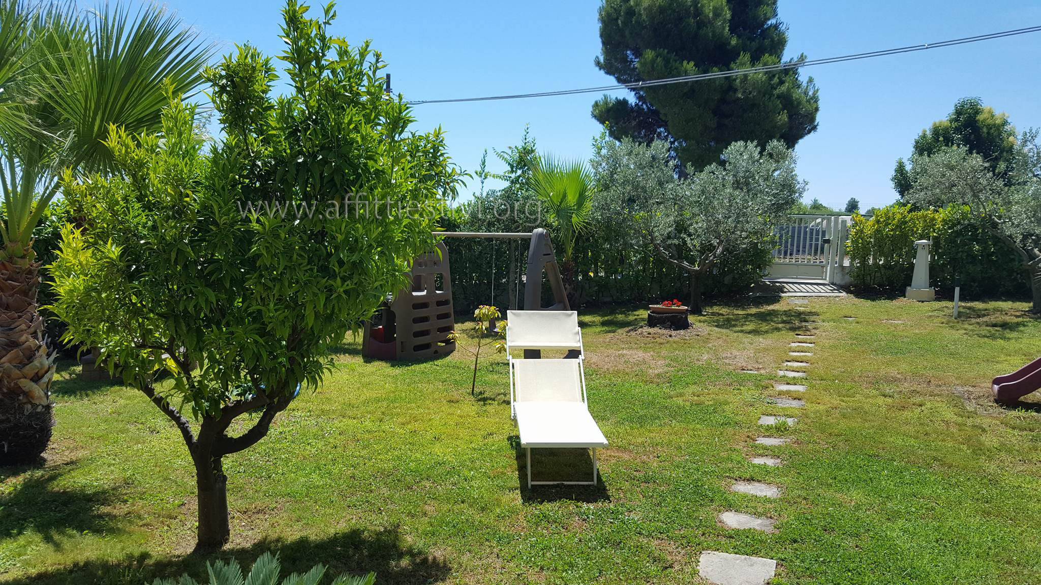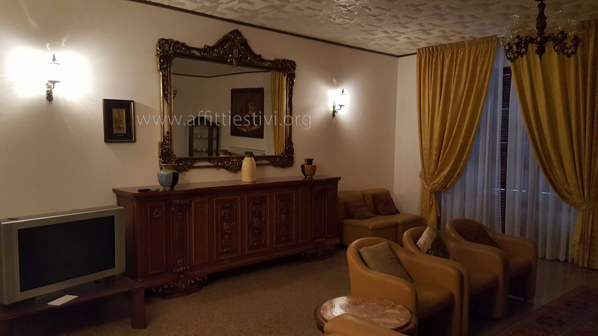 Fantastica Villa in affitto a Roseto, la struttura comprende esternamente: un grande parco con prato ed alberi, un piccolo uliveto collinare, una ampio parcheggio pavimentato, un garage, una terrazza arredata con vista panoramica sul mare e sulla città, balconi perimetrali, un gazebo, doccia e due fontane per l’acqua, un forno a legna, un barbecue in muratura con caminetto. Internamente la villa si divide in due piani: al primo piano c’è un grande salone con divani, poltrone e tavolini, una grande sala da pranzo con lato cucina all’americana: senza pareti divisorie; ben sei comode camere di cui due hanno il bagno con doccia annesso, altri due bagni in comune per un totale di 4. i posti letti complessivi, divisi nelle camere, sono 15, ma nel salone possono essere posizionati letti singoli supplementari e divani letto per un totale di circa 20 posti letto, Nel piano terra ci sono tre camere, che possono ospitare 7 posti letto, due bagni e una grande cucina-soggiorno per un totale complessivo ricettivo della villa di 20-22 persone. Vi sono tantissimi piatti, bicchieri, posate, stoviglie e utensili da cucina di ogni tipo, inoltre è dotata di due lavatrici e due lavastoviglie e due televisori. In tutte le stanze vi sono le ventole sul soffitto, ma essendo in posizione collinare non c’è mai un caldo afoso o esagerato, ma si gode di un caldo mitigato da ria fresca. Il mare è a meno di 1 Km. di distanza, il centro cittadino a circa 2 km. mentre negozi e servizi sono a 500 mt. La zona circostante è residenziale e molto silenziosa, costituita da tanto verde e ville signorili isolate, per cui è possibile protrarsi con eventuali party a base di grigliate, vino e musica fino a tarda notte senza dare fastidio al vicinato.