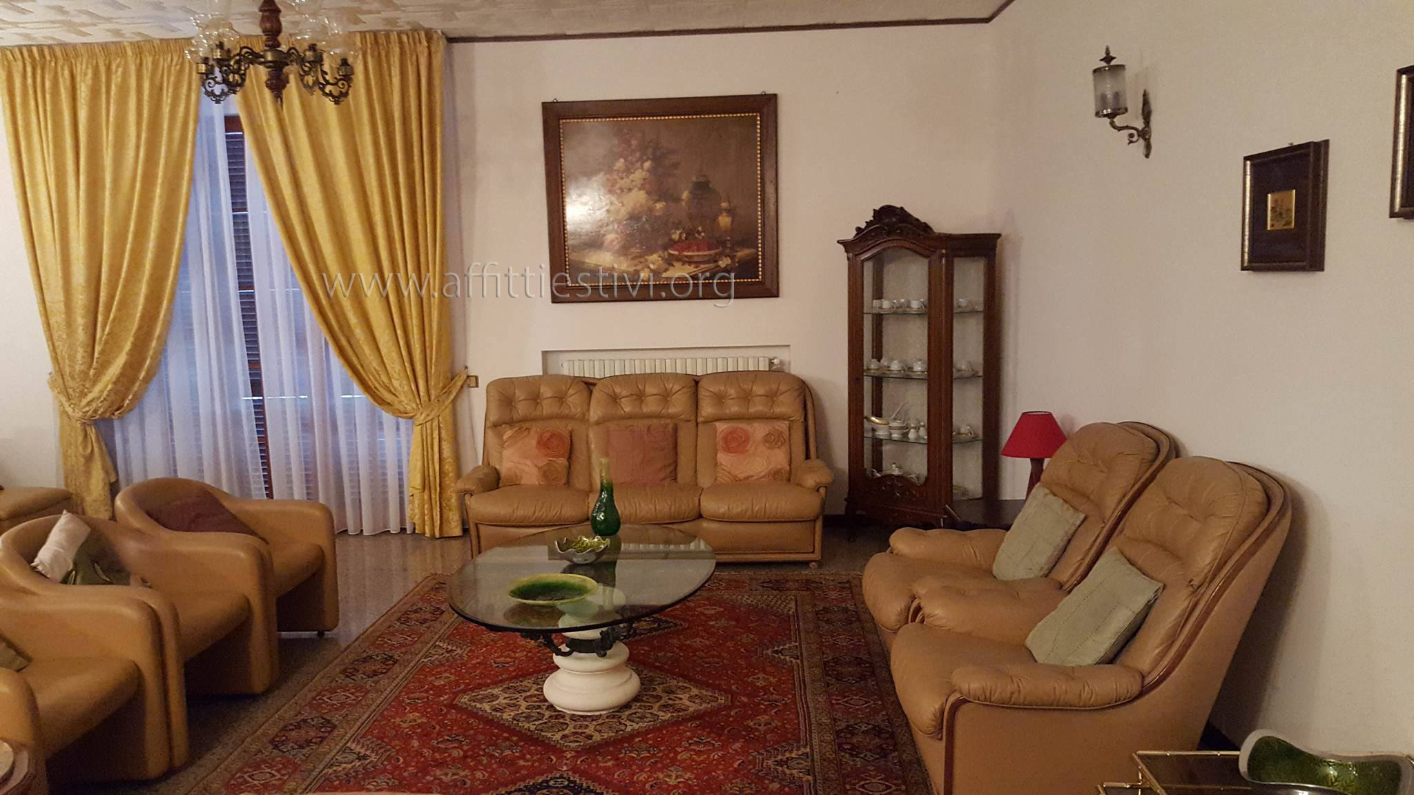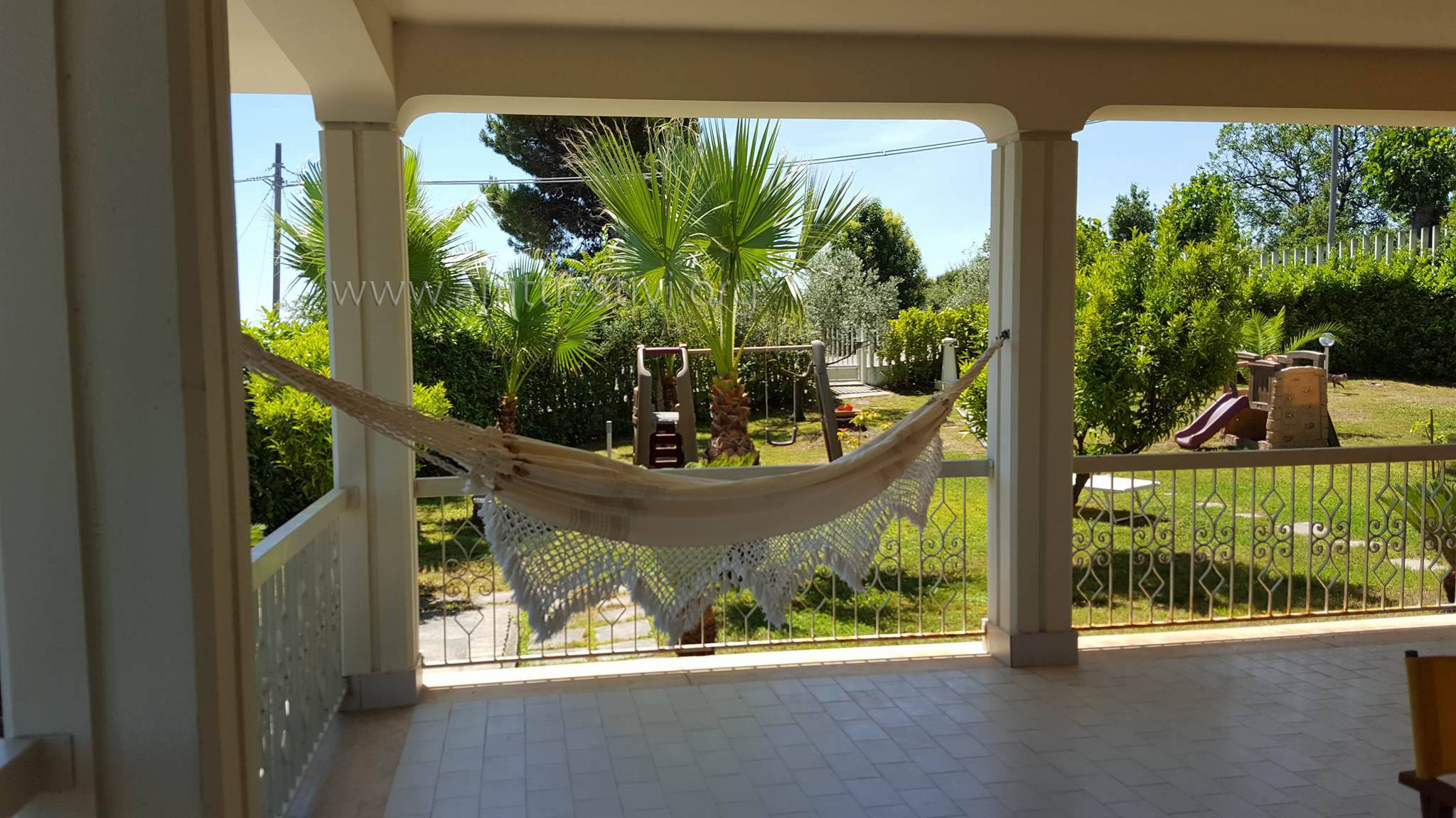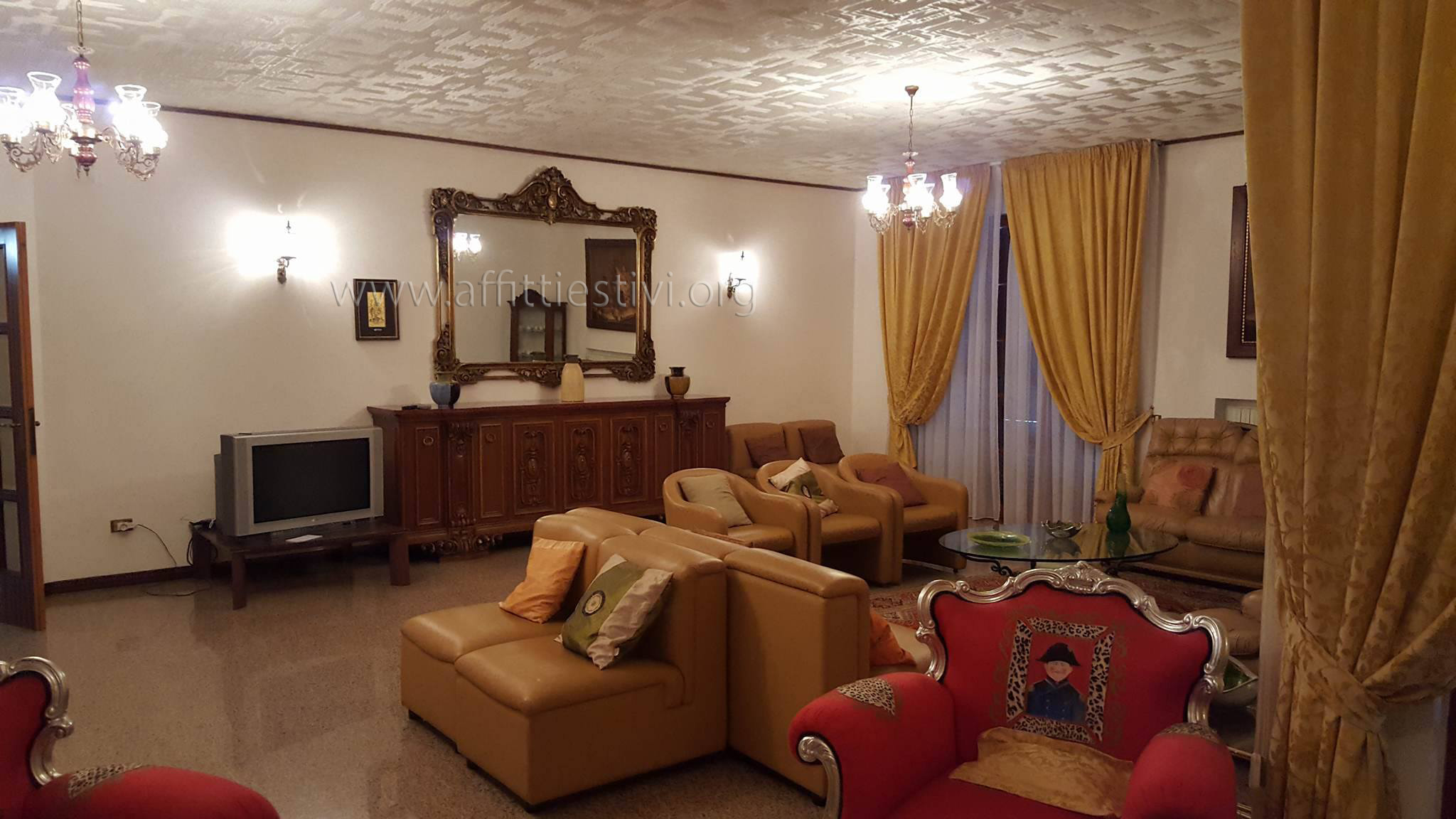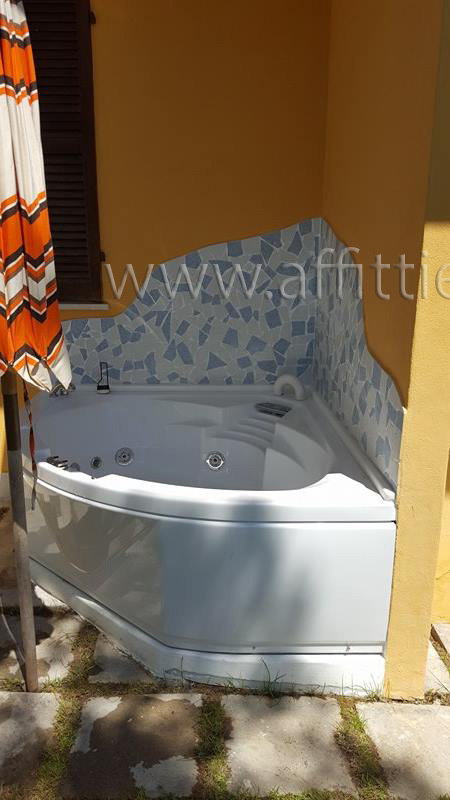 Fantastica Villa in affitto a Roseto, la struttura comprende esternamente: un grande parco con prato ed alberi, un piccolo uliveto collinare, una ampio parcheggio pavimentato, un garage, una terrazza arredata con vista panoramica sul mare e sulla città, balconi perimetrali, un gazebo, doccia e due fontane per l’acqua, un forno a legna, un barbecue in muratura con caminetto. Internamente la villa si divide in due piani: al primo piano c’è un grande salone con divani, poltrone e tavolini, una grande sala da pranzo con lato cucina all’americana: senza pareti divisorie; ben sei comode camere di cui due hanno il bagno con doccia annesso, altri due bagni in comune per un totale di 4. i posti letti complessivi, divisi nelle camere, sono 15, ma nel salone possono essere posizionati letti singoli supplementari e divani letto per un totale di circa 20 posti letto, Nel piano terra ci sono tre camere, che possono ospitare 7 posti letto, due bagni e una grande cucina-soggiorno per un totale complessivo ricettivo della villa di 20-22 persone. Vi sono tantissimi piatti, bicchieri, posate, stoviglie e utensili da cucina di ogni tipo, inoltre è dotata di due lavatrici e due lavastoviglie e due televisori. In tutte le stanze vi sono le ventole sul soffitto, ma essendo in posizione collinare non c’è mai un caldo afoso o esagerato, ma si gode di un caldo mitigato da ria fresca. Il mare è a meno di 1 Km. di distanza, il centro cittadino a circa 2 km. mentre negozi e servizi sono a 500 mt. La zona circostante è residenziale e molto silenziosa, costituita da tanto verde e ville signorili isolate, per cui è possibile protrarsi con eventuali party a base di grigliate, vino e musica fino a tarda notte senza dare fastidio al vicinato.