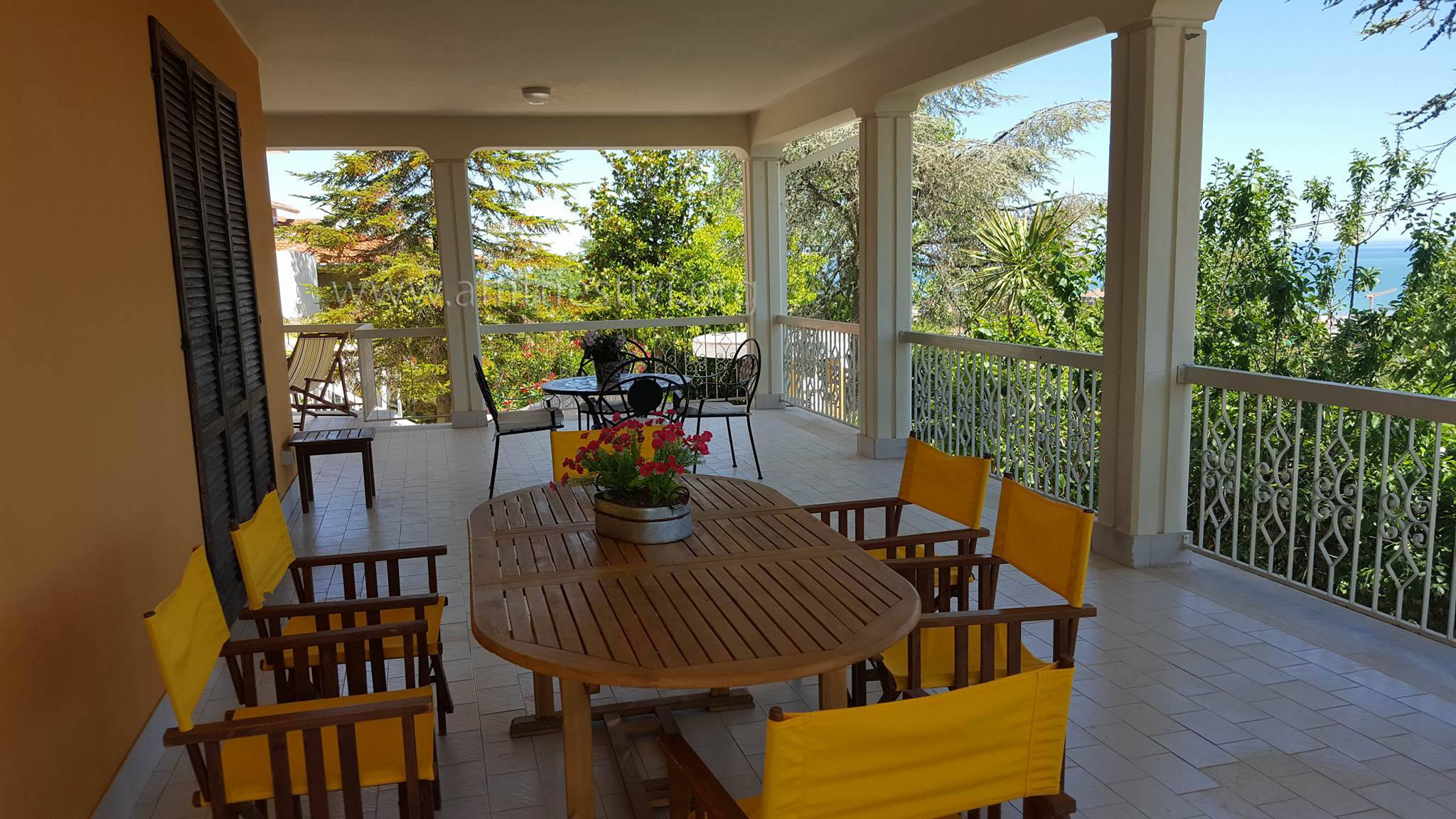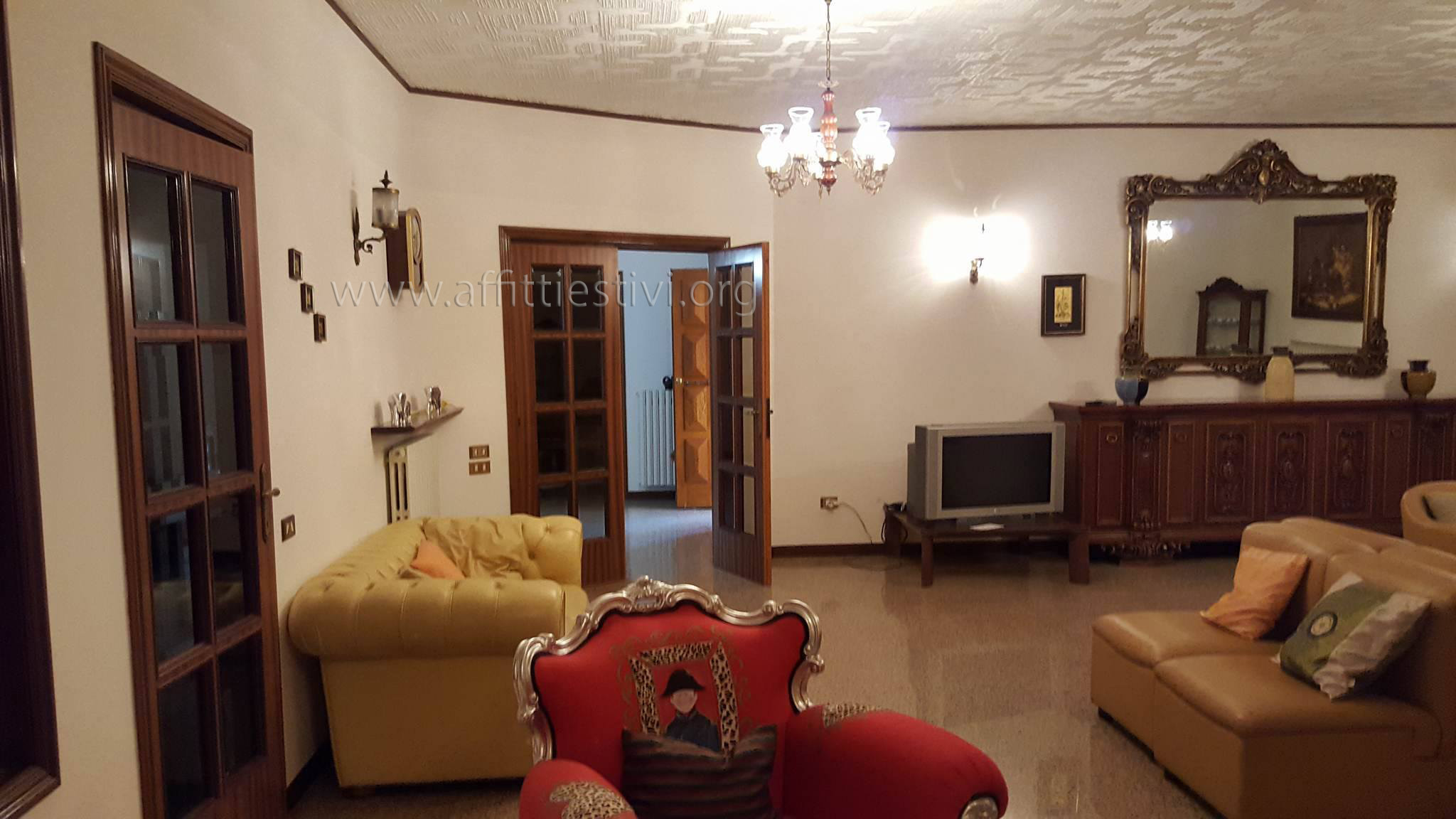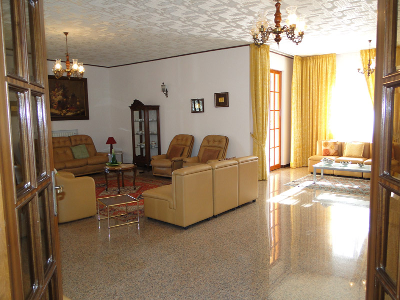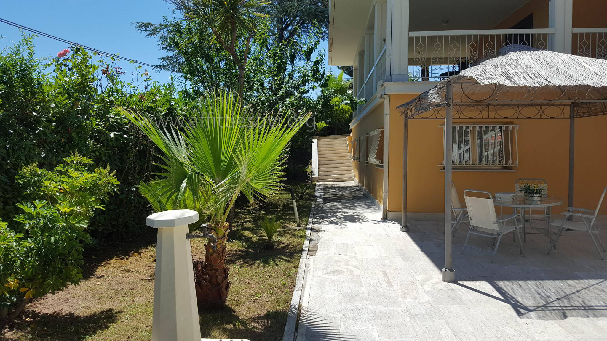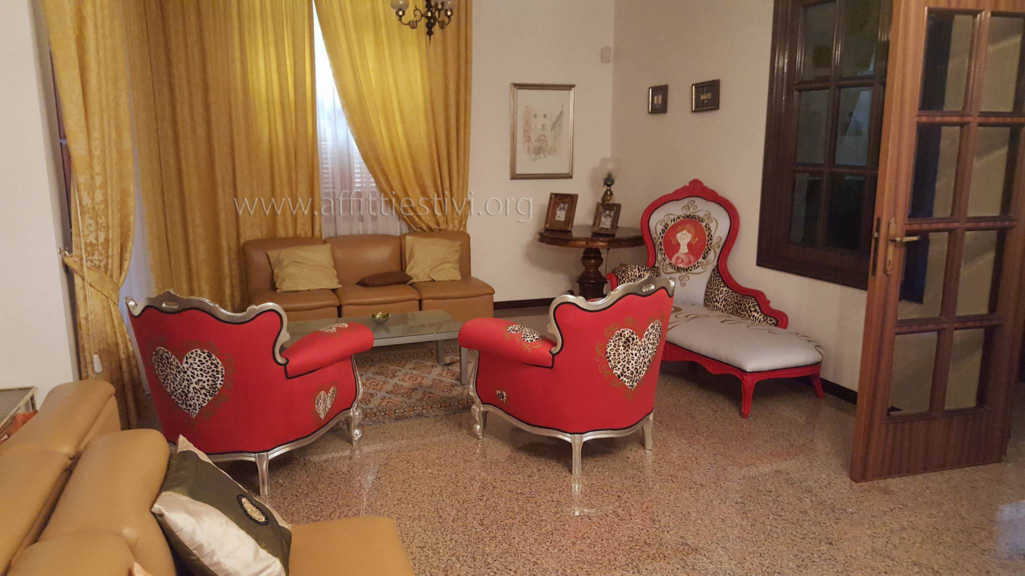 Fantastica Villa in affitto a Roseto, la struttura comprende esternamente: un grande parco con prato ed alberi, un piccolo uliveto collinare, una ampio parcheggio pavimentato, un garage, una terrazza arredata con vista panoramica sul mare e sulla città, balconi perimetrali, un gazebo, doccia e due fontane per l’acqua, un forno a legna, un barbecue in muratura con caminetto. Internamente la villa si divide in due piani: al primo piano c’è un grande salone con divani, poltrone e tavolini, una grande sala da pranzo con lato cucina all’americana: senza pareti divisorie; ben sei comode camere di cui due hanno il bagno con doccia annesso, altri due bagni in comune per un totale di 4. i posti letti complessivi, divisi nelle camere, sono 15, ma nel salone possono essere posizionati letti singoli supplementari e divani letto per un totale di circa 20 posti letto, Nel piano terra ci sono tre camere, che possono ospitare 7 posti letto, due bagni e una grande cucina-soggiorno per un totale complessivo ricettivo della villa di 20-22 persone. Vi sono tantissimi piatti, bicchieri, posate, stoviglie e utensili da cucina di ogni tipo, inoltre è dotata di due lavatrici e due lavastoviglie e due televisori. In tutte le stanze vi sono le ventole sul soffitto, ma essendo in posizione collinare non c’è mai un caldo afoso o esagerato, ma si gode di un caldo mitigato da ria fresca. Il mare è a meno di 1 Km. di distanza, il centro cittadino a circa 2 km. mentre negozi e servizi sono a 500 mt. La zona circostante è residenziale e molto silenziosa, costituita da tanto verde e ville signorili isolate, per cui è possibile protrarsi con eventuali party a base di grigliate, vino e musica fino a tarda notte senza dare fastidio al vicinato.